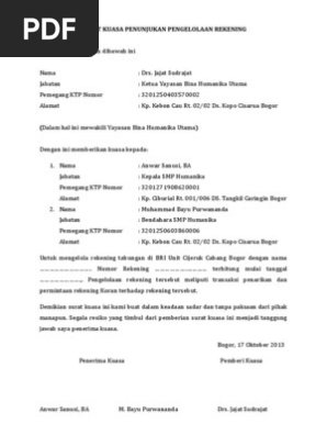 Doc Surat Kuasa Penunjukan Pengelolaan Rekening Paula Sawyer Academia Edu