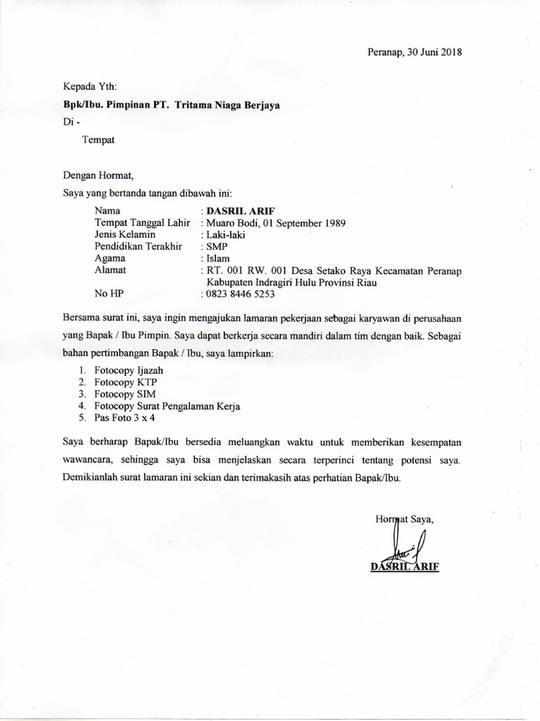 Contoh Surat Lamaran Kerja Tulis Tangan Dan Ketik Komputer Surat Tulisan Cv Kreatif