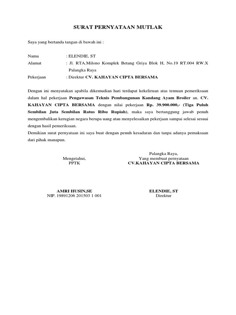 Contoh Surat Pernyataan Tanggung Jawab Pengadaan