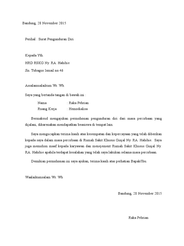 Wow Contoh Surat Pengunduran Diri Pada Masa Percobaan. Contoh surat pengunduran diri dalam masa percobaan contoh surat. contoh surat pengunduran diri masa percobaan syd thomposon 2012. contoh surat pengunduran diri masa percobaan. contoh surat pengunduran diri. contoh surat pengunduran diri dalam masa percobaan contoh surat. contoh surat pengunduran diri masa percobaan kerkosa. 12 contoh surat pengunduran diri resign bagus dan halus Baca juga: Surat