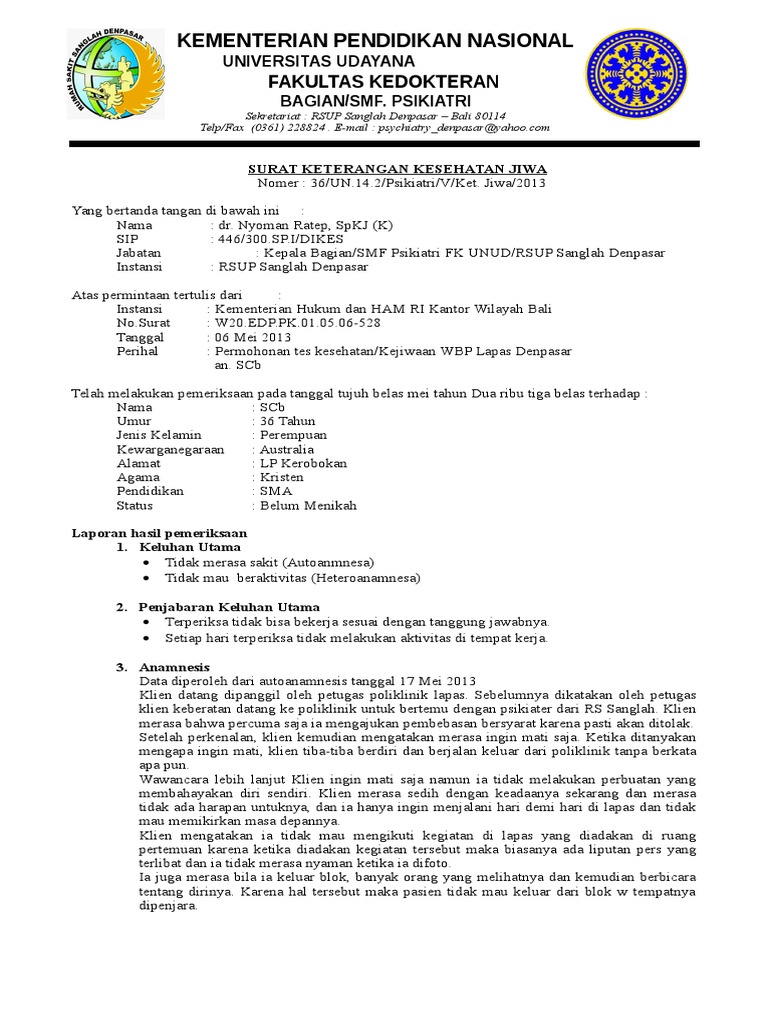 Contoh Surat Keterangan Sakit Jiwa Dari Dokter Nusagates