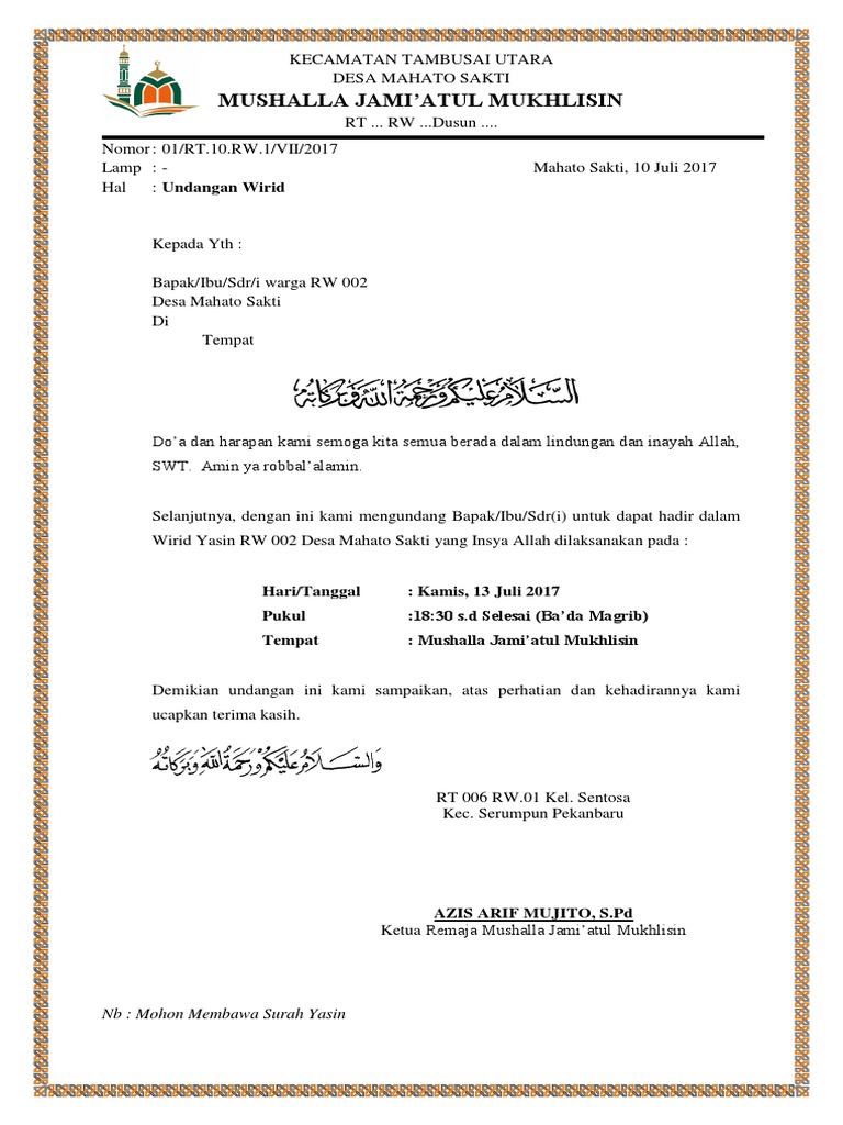 Contoh Surat Undangan Pengajian Rutin Bulanan Sample Surat Undangan